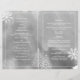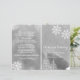 Moderne abstrakte Aquarellspritze graue Winterhochzeit und gefaltetes Party-Programm mit handgemalten Aquarellmalerei mit Textur in Grautönen in Weiß mit Schnee , Schneeflocken und Text in Weiß. Dieses elegante und stilvolle lässige Hochzeitsdesign ist ein individuell anpassbares Template für Ihre Winterhochzeit.