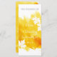 Moderne abstrakte Aquarellfarben-Splash-gelbe Hochzeitsfeier und Party-Programm mit handgemalten Aquarellfarben-Splash mit Textur in Gelb- und gebrannten Orangen, Ahorn-Blätter in Weiß mit blassgelben Venen und Text in Weiß und Grau. Dieses elegante und stilvolle lässige Hochzeitsdesign ist ein individuell anpassbares Template für Ihre Hochzeit im Frühjahr, Sommer oder Herbst/Herbst. Beachten Sie, dass dies nur ein Bild von Aquarell ist und keine echte Textur.