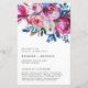 Modernes blumengeschichtliches Hochzeitsprogramm mit Rose und Pfannkuchen in kühlem, lebhaftem Rosa mit Grünpflanzen in aquamarinen und blauen Farbtönen. Diese hellen Hochzeitsprogramme in Juwelentönen sind ideal für eine Hochzeit im Sommer und werden auf Papierblättern für eine preisgünstige Option gedruckt.