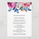Modernes blumengeschichtliches Hochzeitsprogramm mit Rose und Pfannkuchen in kühlem, lebhaftem Rosa mit Grünpflanzen in aquamarinen und blauen Farbtönen. Diese hellen Hochzeitsprogramme in Juwelentönen sind ideal für eine Hochzeit im Sommer.
