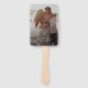 Moderner Hochzeitshandfan mit schlichtem und dennoch elegantem Design, mit Ihren zwei ersten Monogrammen in einem zeitgenössischen Script-Schriftart und Ihren Veranstaltungsdetails, umgeben von einer Grenze, über Ihrem bevorzugten Foto.