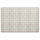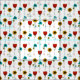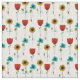 Dieser hübsche Stoff hat ein rundes Jugendstil-Muster inspirierte Blumengrafik in rot, gelb, türkisblau, hellgrün und schwarz mit einfachen geometrischen Akzenten vor weißem Hintergrund.