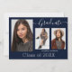 Schöne, 3 Foto, Abschluss Ankündigung Postkarten mit modernen Kalligrafieschrift in Weiß auf Marineblau. Um mehr zu sehen, besuchen Sie meinen Shop hier unter "www.Zazzle.com/LakeViewCardCo". Danke