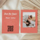 Moderne und elegante, korallrosa Hochzeit speichern Sie die Dattelkarten mit QR-Code für Ihre Hochzeitswebsite auf der Vorderseite, und ein benutzerdefiniertes Verlobung-Foto auf der Rückseite. Ändern Sie die Farben dieser Karte, indem Sie auf "Personalisieren Sie diese Vorlage" klicken und dann auf "Bearbeiten mit dem Entwurfswerkzeug". Wenn Sie Hilfe benötigen, um Änderungen vorzunehmen, schreiben Sie bitte dem Designer.