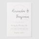Elegante trendige Typografie Drehbuch stilvolle lässige transparente Papier Vellum Hochzeit Einladung in einfachen schwarzen Hand Schrift mit großen Braut-und Bräutigam-Namen Kalligraphie.
