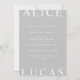 Unsere Kollektion "Ultra Modern Wedding" beinhaltet überdimensionierte Monogramme in einem Serif-Schriftart, die oben und unten überlaufen und mit einem modernen Script für alle weiteren Informationen gepaart sind. Sie können zwischen verschiedenen Hintergrund- und Schriftart-Farben wählen und die Produkte einfach anpassen. Karo in unserem Shop für weitere Artikel aus dieser Kollektion.