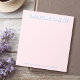 Notepad mit Ihrem Namen in einem fett weißen Schriftart mit einem hellblauen Schatten auf einem hellrosa Hintergrund.