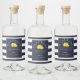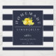 Rustikale Aquarelllemonen und Blätter, modernes Limoncello Getränkelabel. Die Labels zeichnen sich durch schicken marineblauen Hintergrund mit blauen und weißen Streifen aus.