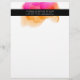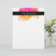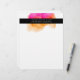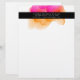 Elegantes modernes Letterhead-Design zeigt Ihren Namen und/oder Firmennamen mit zwei Kontaktdaten in Weiß auf einem schwarzen Streifen, überlagert auf einem Aquarellfarben-Tintenkleckelement in fuchsienrosa und goldener Orange.