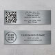 Berufliche und moderne Mini-Visitenkarte auf einem silberfarbenen Imitat mit metallischem Hintergrund. Auf der Vorderseite finden Sie Ihr Logo, Ihren Firmennamen und einen Textblock für Ihren Slogan, Ihre Kontaktdaten oder andere Informationen. Laden Sie auf der Rückseite Ihren QR-Code für Ihre Kunden hoch, um eine Liste Ihrer Produkte, Dienstleistungen, Preise oder andere Informationen zu suchen und zusätzliche Informationen in einfacher Typografie hinzuzufügen.