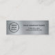 Berufliche Mini-Visitenkarte für Ihr Unternehmen auf einem silberfarbenen Imitat mit metallischem Hintergrund. Auf der Vorderseite finden Sie Ihr Logo, Ihren Firmennamen und einen Textblock für Ihren Slogan, Ihre Kontaktdaten oder andere Informationen. Auf der Rückseite geben Sie Ihre Website URL-Adresse, um einen QR-Code für Kunden zu erstellen, um eine Liste Ihrer Produkte, Dienstleistungen, Preise oder andere Informationen zu suchen und zusätzliche Informationen in einfachen modernen Typografie hinzuzufügen.