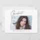 Saubere, trendige, moderne und elegante "3-Foto"-Abschluss-Ansichtskarten mit Designelementen moderner Texte mit einem einzigartigen Kalligraphie-Tintenskript. Die Fotos des Absolventen werden mit einem feinen und minimalistischen Gradientenband betont. Die Kartenrückseite bietet personalisierte Textstellen für Informationen über Ihren Abschluss oder können gelöscht werden, wenn Sie eine Nachricht übergeben möchten. Schwarz & Weiß oder einfach den Hintergrund anpassen, um der Grundfarbe Ihrer Schule oder einer beliebigen Farbe Ihrer Wahl zu entsprechen. Perfekt für die Gymnasialstufe, die Uni und den Hochschulstudiengang.