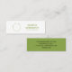 Werben Sie mit dieser Mini-Visitenkarte für Ihre Öko-bewusste Marke oder Nachhaltigkeitsmission. Mit einem eleganten, kreisförmigen Logo und grünem Text auf weißem Hintergrund ist es ideal für Umweltberater, Unternehmen, die nichts verschwenden, recycelnd Fürsprecher und Grünunternehmer. Diese kompakte und berufliche 3" x 1"-Karte eignet sich hervorragend für Vernetzung, Verpackungen und die Kennzeichnung von Öko. Machen Sie mit jeder Verbindung einen sinnvollen Effekt.