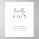 Das einfache und schicke Schild lädt die Hochzeitsgäste ein, Ihr Gästebuch zu unterschreiben. Personalisieren Sie sich mit "freundlichen Zeichen" und Ihrem eigenen Text in weichem schwarzem Kalligraphieskript und traditioneller Serifenschrift.