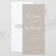 Hochzeitsprogramm mit modernem handgeschriebenem Kalligrafieschrift in neutralem taupe beige, den Rücken mit eigenen Informationen anpassen.