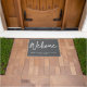 Moderne Minimalistische Welcome Doormat in Grau und Weiß mit personalisiertem Firmennamen.