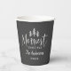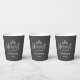Merriest Weihnachten rustikale Typografie Urlaub Papier Tassen. Mit modernem handgezeichneten Text und Bäumen. Farbe kann angepasst werden.