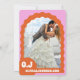 Unsere minimale, mutige Retro-Hochzeit rette-the-date-Karte ist perfekt für das trendige Paar, das Lieben stehend und eine kühne Aussage machen. Unser Design zeichnet sich durch eine fett leuchtend rosa-orange Farbkombination aus. Eine abstrakte, gewölbte Bogenform schafft einen kühnen Look, wobei das Hochzeitdatum kühn in weißem, großen Schriftart angezeigt wird. Auf der Rückseite befindet sich ein komplettes Foto-Layout mit einem fett gedruckten Monogramm und einer optionalen Website für Ehepaare