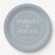 Moderne Hochzeitszeitung für Ihren Hochzeitsempfang, Probe Dinner und Brautparty im minimalistischen hellgrauen oder grauen Thema.