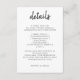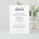 Einfache, stilvolle Hochzeitsdetails in einem modernen minimalistischen Design-Stil mit einer eleganten, naturgetreuen Schrift-Typografie in Schwarz und Weiß, mit einem informellen Schriftart im Stil der Handschrift. Der Text kann leicht für ein einzigartiges Design für Ihren besonderen Tag personalisiert werden. Wenn Sie Hilfe bei der Anpassung dieses Produkts benötigen, kontaktieren Sie mich bitte über den unten stehenden Nachrichtenkopf und ich werde Ihnen gerne helfen.