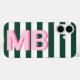 Erstellen Sie Ihre eigene iPhone-Box mit Ihren personalisierten Initialen auf gestreiftem Hintergrund.