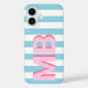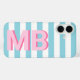Erstellen Sie Ihre eigene iPhone-Box mit Ihren personalisierten Initialen auf gestreiftem Hintergrund.