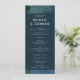 Elemente: abstrakter Aquarell-Hintergrund. Namen und Details erscheinen in modernen serifenlosen Schriftart. Zurück enthält Foto- und UAWG QR-Code. Farben: blau, grün, smaragdgrün, ozeangrün, marinebrün, königsblau, azurblau. Themen: modern, minimalistisch, zeitgemäß, Juwelen. Sammlung: Moderne Minimalistische Blue Aquamarin Foto Wedding Collection. Art des Produkts: Programm