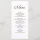 Modernes Dinner-Menü für Hochzeiten, mit einem einfachen minimalistischen Design und anpassbaren Buchstaben. Günstig für die Planung eines eleganten Essens für Ihren besonderen Tag.