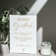 Dieses Gästebuchzeichen ist aus Gold und hat einen modernen minimalistischen Stil mit einem handgeschriebenen Boho. Das klassische Schwarz-Weiß-Farbschema macht es zu einem idealen Akzent für jede Ansammlung. Nutzen Sie dieses Plakat für Ihre Hochzeitsfeier, Ihr Brautparty, Ihre Ruhestandsfeier und andere besondere Anlässe. Bearbeiten Sie *fast* des Textes, um Ihre Bedürfnisse Anzug.