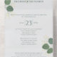 Dieses Design zeichnet sich durch einen modernen grünen QR-Code aus, mit einer modernen Online-uAwg-Reaktion auf der Website, mit Eukalyptus-Blätter, grünem Blattwerk, einer minimalen Kundenreaktion über die Website, einem trendigen, einfachen Typografie-Script-Schriftart, einem trendigen, stylischen Kalligraphieampersand, einer preisgünstigen Einladungsvorlage, einer Hochzeitdetails-Webadresse, einer scannbaren QR-Codeantwort, einer Antwort per Webcode-Antwort auf eine Antwort auf die auf die auf eine Website