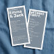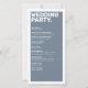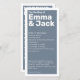 Feiern Sie Ihren besonderen Tag mit diesem eleganten und modernen Hochzeitsfeierungsprogramm in einem puristischen minimalistischen Design in einer sanften Blau-Weiß-Palette. Auf der Vorderseite werden die Namen der Hochzeiten hervorgehoben, mit einer detaillierten Reihenfolge der Zeremonie, einschließlich Vormusik, Prozessionshinweise, Begrüßungsbemerkungen, Lesungen, Austausch von Versprechungen und Ringen, Heiratserklärung und Rezension. Ein herzliches Dankeschön des Ehepaares an seine Gäste. Auf der Rückseite finden Sie die komplette Hochzeitsfeier, einschließlich der Amtsinhaber, der Eltern von Braut und Bräutigam, Trauzeugin, Trauzeuge, Brautmädchen, Trauzeugen, Blume und Ringträger. Diese Vorlage ist für Ihre eigenen Namen, Zeremoniell-Details und Hochzeitsfeier vollständig anpassbar. Ideal für Paare, die ein stilvolles, leicht zu lesendes Programm suchen, das sich als wahrer Genuss für die Gäste erweist.