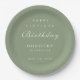 Schöne moderne minimalistische Geburtstagsparty Papier Teller in Salbei grün. Für jeden Geburtstag individuell einstellbar