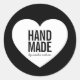 Moderner minimalistischer Aufkleber mit dem Wort "Handmade" in fett formatiertem Schriftart und einem stilvollen Schrift für Ihren Namen oder den Namen Ihres Ladens in Schwarz gegen ein weißes Herz. Benutzen Sie diesen "Handmade" Aufkleber, um Ihre handgefertigten Waren zu verpacken und zu verpacken. Personalisieren Sie es, indem Sie den Platzhalter-Text ersetzen. Für weitere Optionen, wie zum Beispiel den Schriftart zu ändern und seine Größe, klicken Sie auf die Schaltfläche "Anpassen". *Bitte beachten Sie, dass das Zazzle-Wasserzeichen, das in der Zoomvorschau angezeigt wird, NICHT auf dem gedruckten Endprodukt erscheint. © Rosewood and Citrus