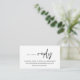 Dies ist die moderne schöne Minimalistische, RSVP-Karte, in einfachem schwarzen Skript, für Ihre Hochzeit Einladung reagieren, oder Party feiern Gehäuse Karte. Sie können die Schriftart-Farben ändern und Ihre Hochzeitswebsite-Details mit dem Zazzle-Textbearbeitungstool hinzufügen. #TeeshaDerrick