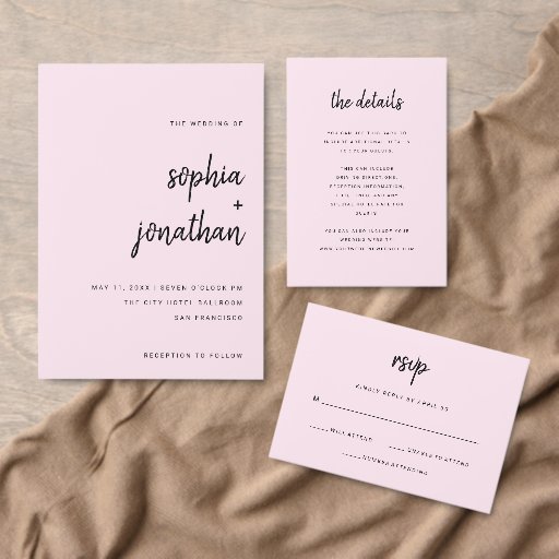 Modernes Minimalistisches Script-Blush | Angaben z Begleitkarte
