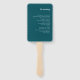 Diese eleganten, minimalistischen Hochzeitsfans sind mit weißer, moderner Schrift-Typografie und einem sauberen, serifenlosen Text für ein einfaches und stilvolles, aquamarines Design, das Sie Liebe. Die Rückseite des Ventilators enthält Ihre Zeremonie oder andere Informationen Ihrer Wahl.