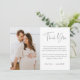 Les cartes de remerciement minimalistes modernes pour votre mariage, fiançailles, douche de mariée ou douche de bébé présentent «merci» en lettrage manuscrit moderne noir doux, avec votre texte personnalisé et signature en dessous. Ajoutez une photo à côté de votre message. Ce design minimaliste simple en noir et blanc classique est parfait pour toutes les occasions.