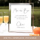 Das schlichte und elegante Schild mit der schwarzen Asche auf einem knusprigen, weißen Hintergrund rundet den Mimosa-Bar ab. "Mama-osa Bar" steht bei der Schrift in modernen Schriften ganz oben. Personalisieren Sie diese mit kurzen Anweisungen, "Cheers" und Ihren Namen und/oder Veranstaltungsdatum unten.