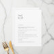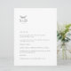 Das moderne, weiße und schwarze Hochzeitsmenü verleiht der Dekoration der Hochzeitsfeier eine elegante Touch. Alle Texte sind editierbar, klicken Sie einfach auf 'Diese Vorlage personalisieren'. Es stehen auch passende Artikel wie Platzkarten, Tischnummern und Hochzeitsschilder zur Verfügung.