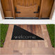 Moderne modische scandi Art-Willkommensfußmatte mit einem Holz und einem schwarzen diagonalen Druck.