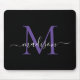 Moderne Schwarz Lila Violet Monogram Elegant Girly Script Mouse Pad