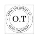 Moderne und gepflegte Design-Selbstfarben Buch Briefmarke. Mit dem Monogramm in der Mitte und dem gebogenen Text "From The Library Of" im modernen serifenlosen Schriftart mit dem Monogramm und gerahmt mit zwei klaren Kreisgrenzen. Text, Name und Monogramm können individuell angepasst werden. Es ist perfekt, diese Briefmarke zu nutzen, um Ihre Bücher zu personalisieren.