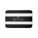 Mit dieser modernen, schwarz-weiß gestreiften Badematte verleihen Sie Ihrem Bad einen Gesichtslift. Es ist mit horizontalen Streifen entworfen und das Zentrum ist mit dem Nachnamen Ihrer Familie in modischer Schrift-Handschrift angepasst. Klicken Sie auf Vorlagenoption personalisieren und geben Sie den Namen ein.