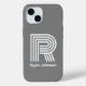 Dieses moderne monogramm graue iPhone 15 Gehäuse ist modern und klassisch. Es zeigt Ihren ersten oder letzten Start in einem fett angesagten Schriftart und Ihren Namen in einem koordinierenden klassischen Schriftart in Weiß. Es ist einfach und minimal.