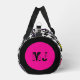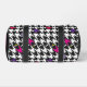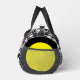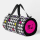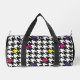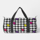 Moderne Monogram Lila Hahnentrittmuster Duffle Tasche. Moderne Akzente setzen auf das klassische Schwarz-Weiß-Hahnentrittmuster, mit hellrosa, lila und gelben Akzenten und einem kühnen, bedrückten Schriftart. Fügen Sie Ihr Monogramm oder Ihre Initialen zu diesem stilvollen Fitnessraum oder Reisegepäck am Wochenende hinzu, um es einzigartig zu machen.