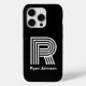 Dieses moderne Monogramm schwarzes iPhone 15 pro Gehäuse ist modern und klassisch. Es zeigt Ihren ersten oder letzten Start in einem fett angesagten Schriftart und Ihren Namen in einem koordinierenden klassischen Schriftart in Weiß. Es ist einfach und minimal.