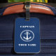 Moderner Nautical Anchor & Ihr Name oder Bootname mit Custom Captain Rank auf einem Personalisierten Blue Luggage Tag.