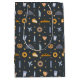 Fügen Sie Ihrem Geschenk einen eleganten urbanen Stil mit unserer modernen New York City Pattern Space Gray Medium Geschenktasche hinzu! Mit der lebendigen Abbildung "Big Apple, Big Liebe" feiert dieses zeitgenössische Design die Energie und den Geist des NYC. Das Muster zeigt symbolträchtige Stadtsymbole wie die Freiheitsstatue, das Empire State Gebäude, das One World Trade Center, das klassische Gelbe Taxi, eine heiße Bretzel, eine Pizzascheibe, Käsekuchen und die legendäre NYC Kaffeetasse. Set vor einem eleganten, grauen Hintergrund, verbindet das Design moderne Eleganz mit großstädtischem Flair und macht es zu einer herausragenden Wahl für Geburtstage, Abschlüsse, Firmenveranstaltungen und andere besondere Anlässe. Ideal für New Yorker Liebhaber, Stadtträumer und alle gezeichnet, um stilvolle Pop-Kunst-Design.