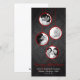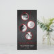 Dieses zeitgenössische Design mit vier eigenen Fotos, die jeweils in einem roten Dekor an einem glänzenden schwarzen Damast-Papier-Hintergrund hängen. "Fröhliche Weihnachten" in Wirblem Schriftart passt perfekt zum Familiennamen.