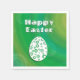 Eine abstrakte Retro-Osterdarstellung mit einem weißen Ostereier in Papierkunst auf einem farbenfrohen, grün geschraubten Hintergrund.